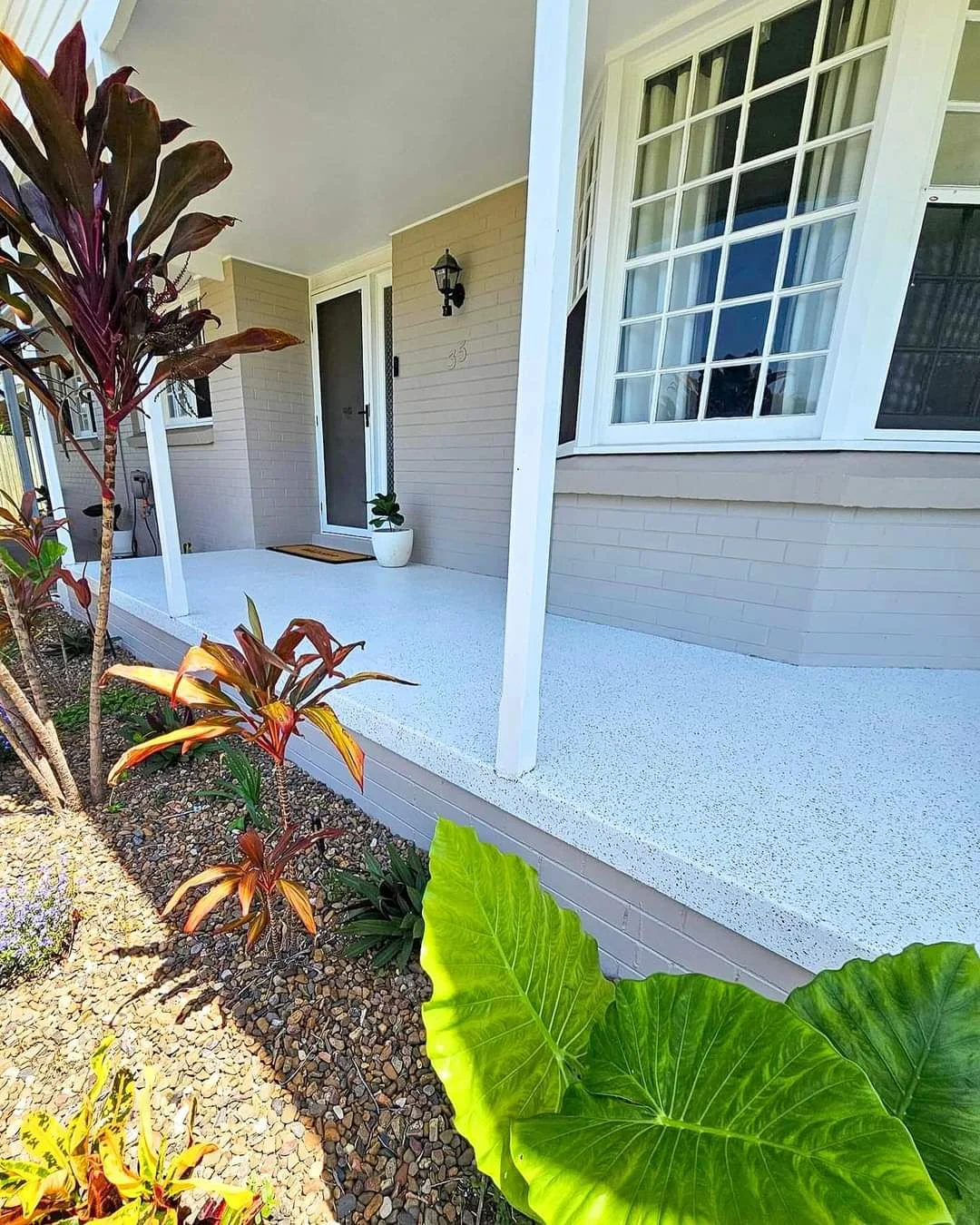 Weather-resistant outdoor resurfacing for patios and walkways.